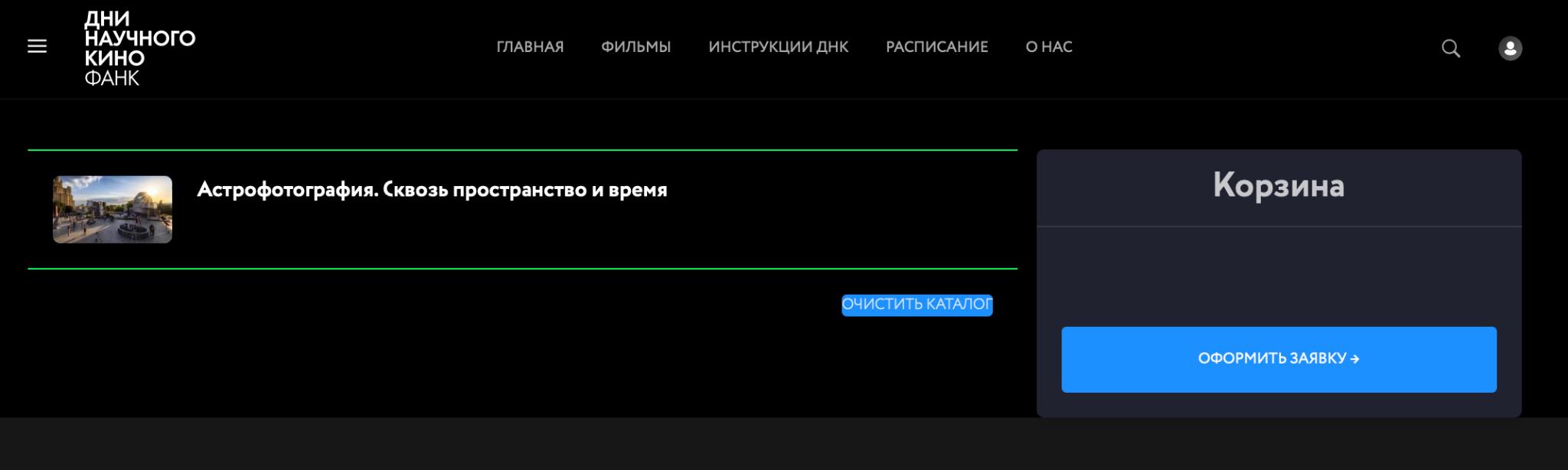 Идете в каталог Фильмов, добавляете те, которые хотите показать к себе в корзину.Если хотите удалить какой-то из фильмов, переходите в “Корзину” жмете “Очистить каталог”.