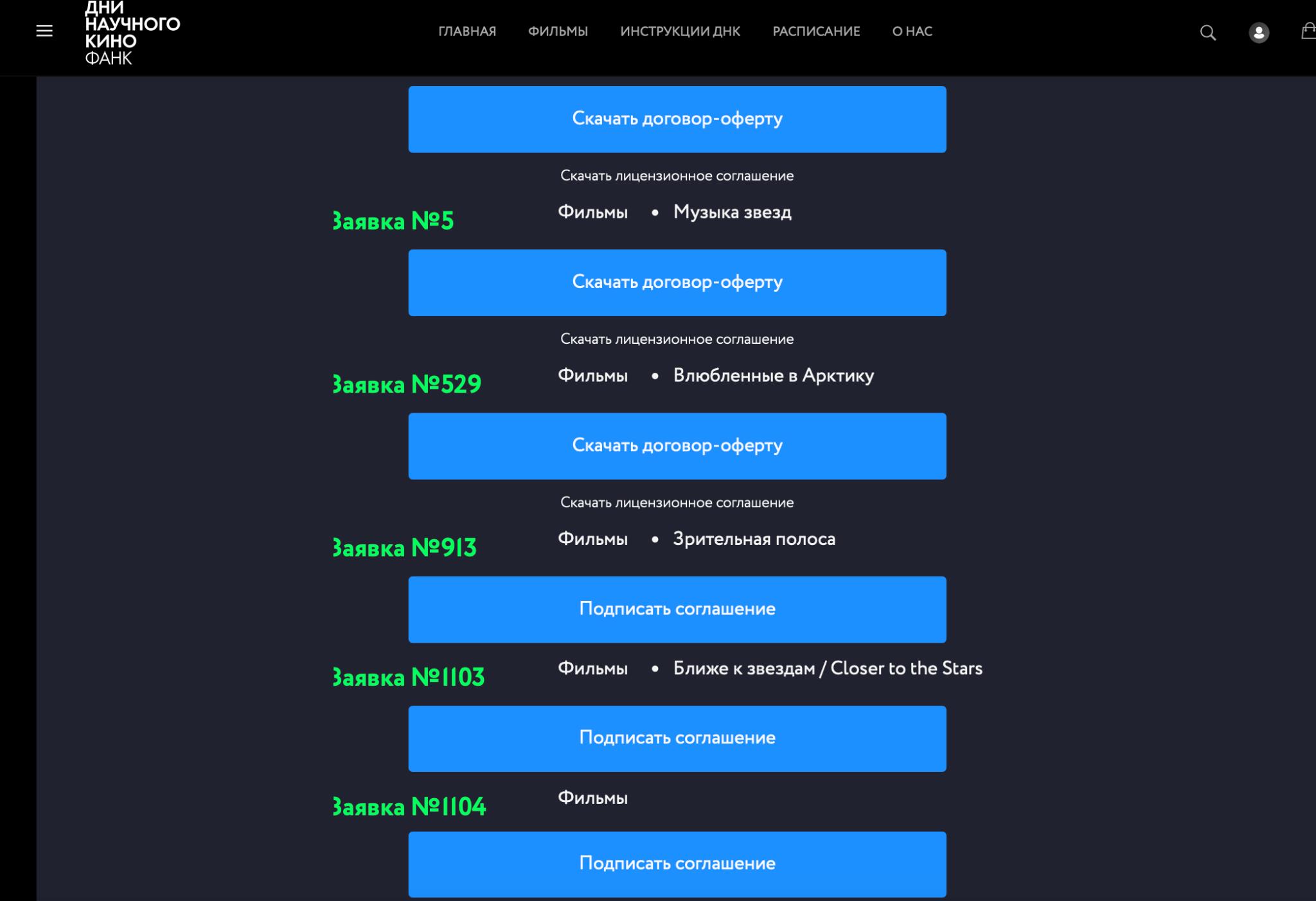 После подписания соглашения в разделе «Фильмы» появится кнопка со ссылкой на скачивание фильма. Вы можете скачать его для тестирования, для отправки эксперту.